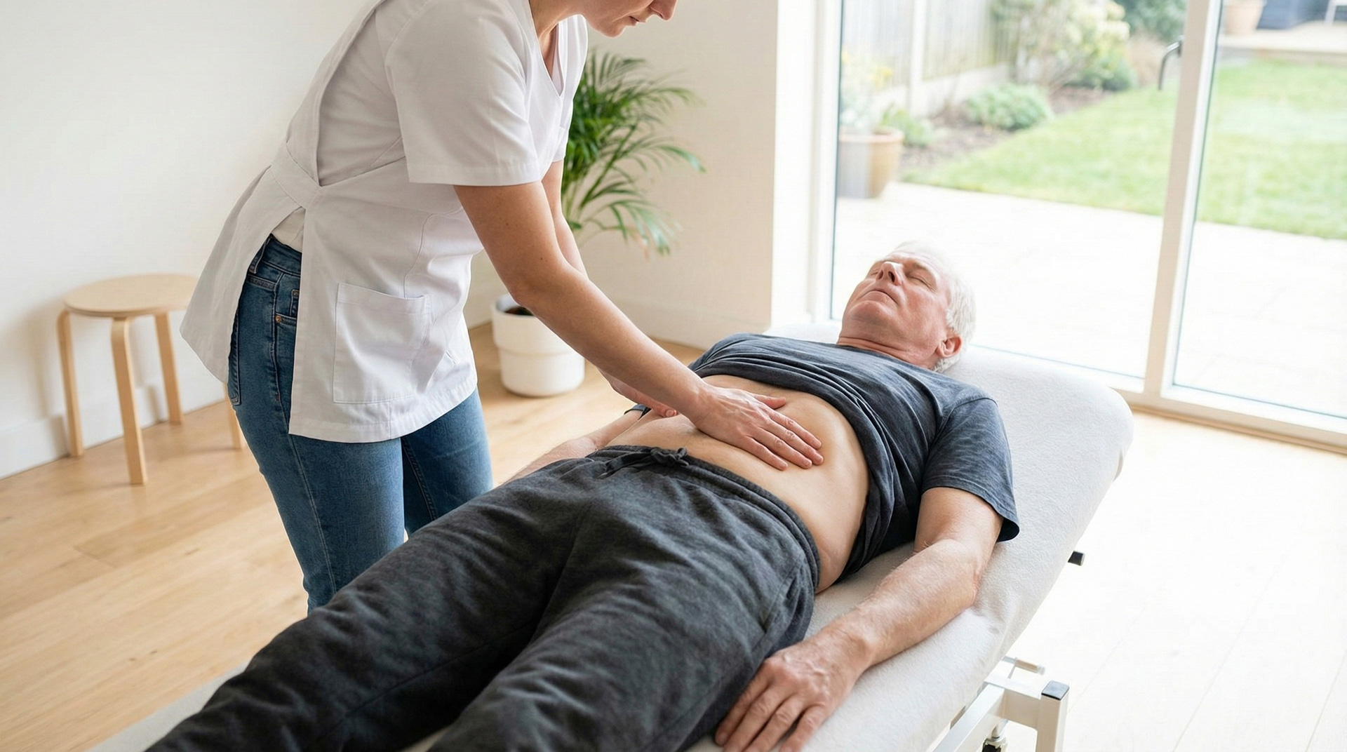 Die Atmung steht in direkter Verbindung zu Muskeln, Faszien, Organen und dem Nervensystem. Durch spezifische Griffe, Dehnreize und manuelle Impulse werden sensorische Strukturen angesprochen, die eine reflexhafte Atemantwort auslösen. So können Atmung, Rumpfbeweglichkeit, Muskelspannung und Körperwahrnehmung nachhaltig verbessert werden.
